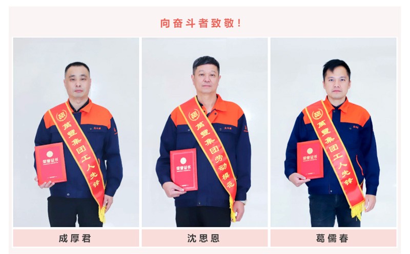 總有這么一群人,以己之力與時間賽跑,與品質(zhì)并行,用“奔跑”的成果來標(biāo)注一個品牌的成長速度。在晚會中,北斗星制造副總經(jīng)理沈思恩先生被授予“萬豐集團(tuán)勞動楷模”殊榮稱號,營銷中心成厚軍和制造部葛儒春分別被授予“萬豐集團(tuán)工人先鋒”稱號,鼓勵他們再接再厲,共創(chuàng)輝煌。