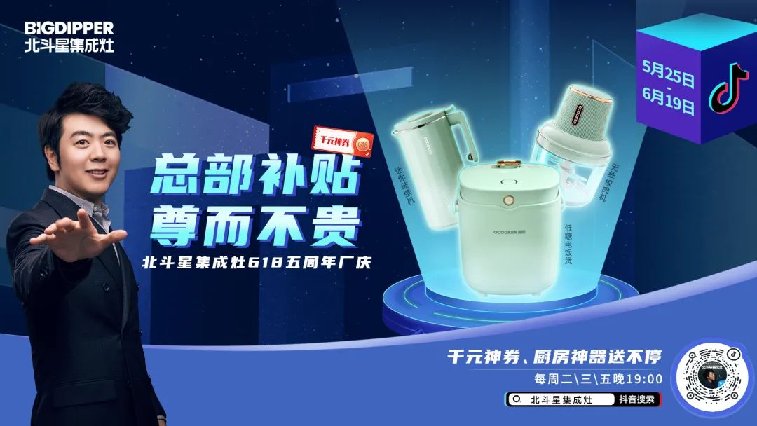 5月25日-6月19日,北斗星集成灶618五周年廠慶,正在進(jìn)行中!每周2、3、5 晚19:00,來【北斗星集成灶】抖音直播間,千元神券、廚房神器送不停!入手北斗星,感受不一樣的廚房體驗!