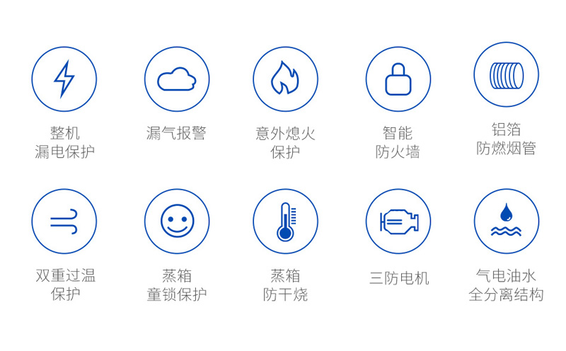 1、智能防火墻:集成灶內(nèi)置電子感應(yīng)防火墻,對(duì)高溫實(shí)行敏感探測(cè),當(dāng)探測(cè)到明火或溫度過(guò)高時(shí),就能立馬切斷電路。