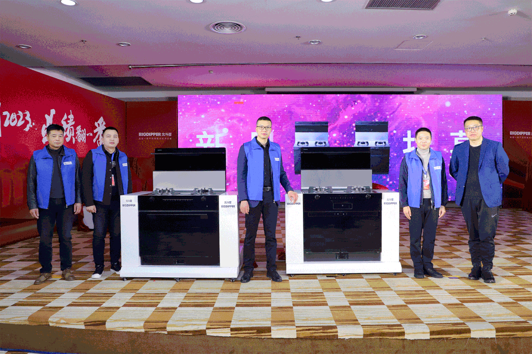 年會上,北斗星重磅發布了4大系列集成廚電新品和1款燃熱新品,成團出道。